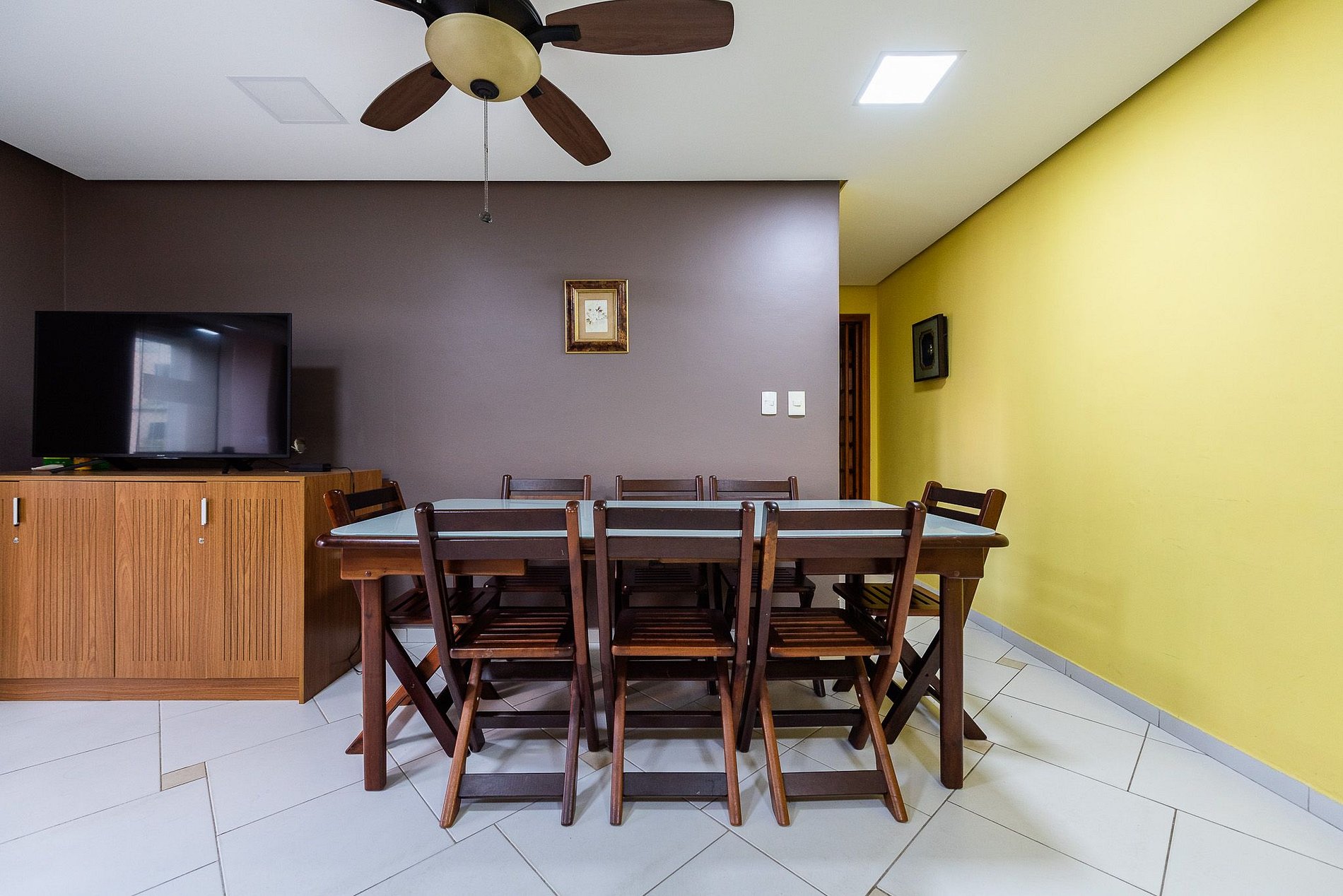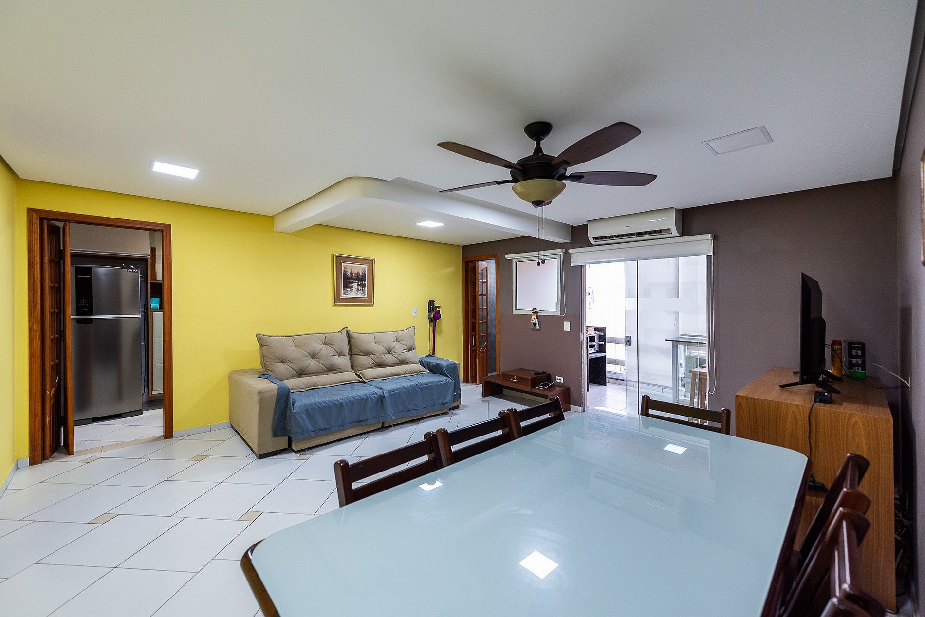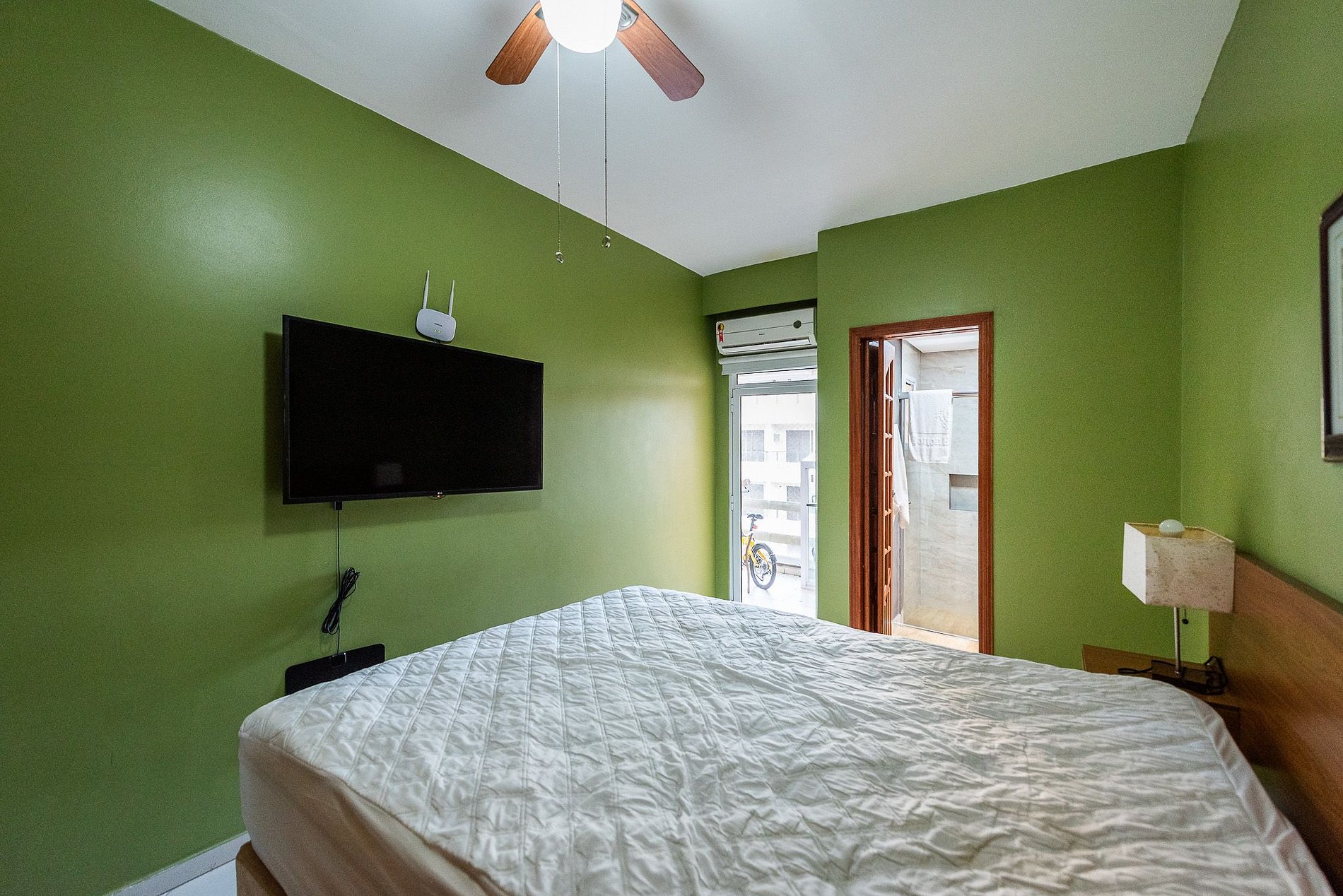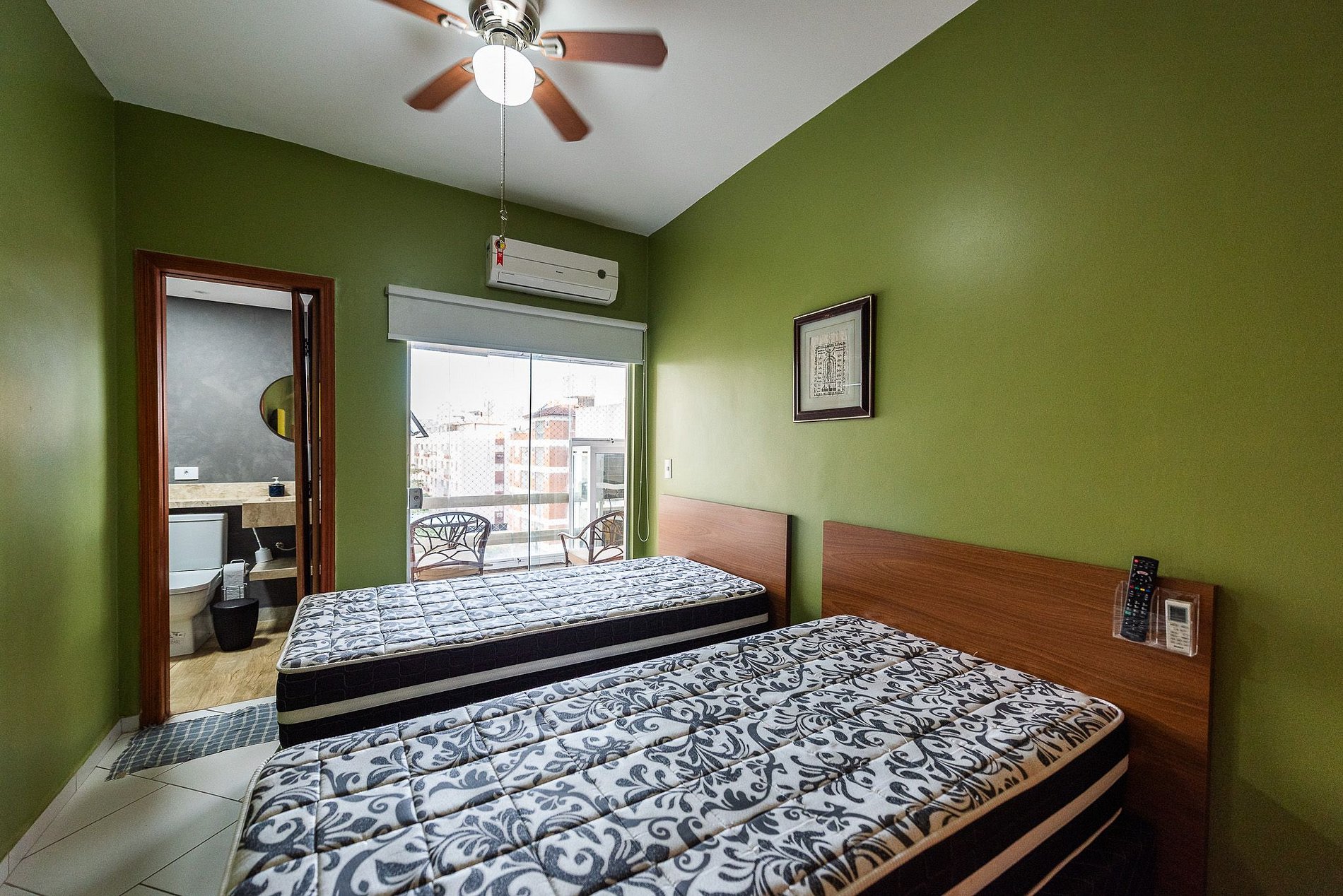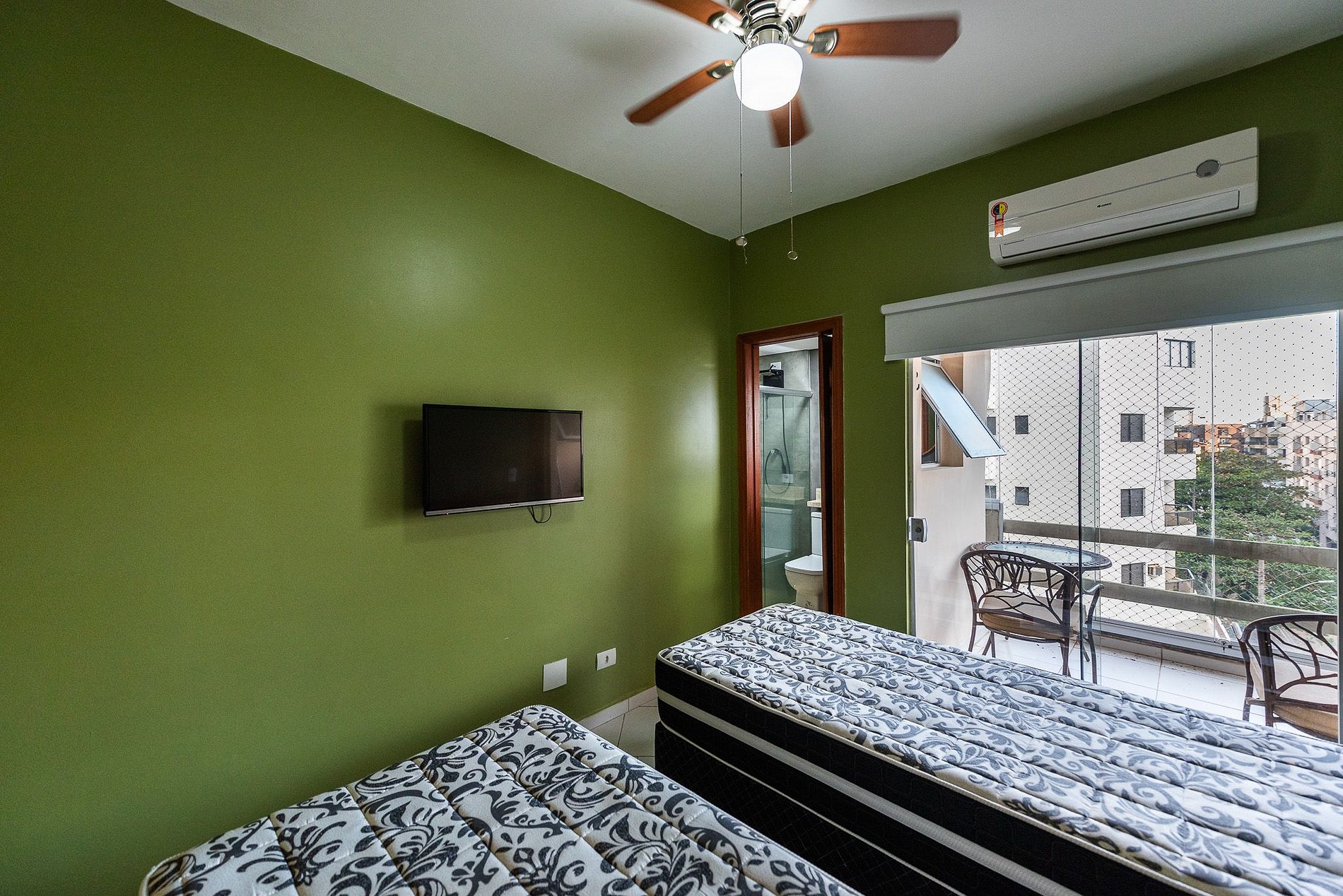- Ar condicionado e ventilador na sala e quartos