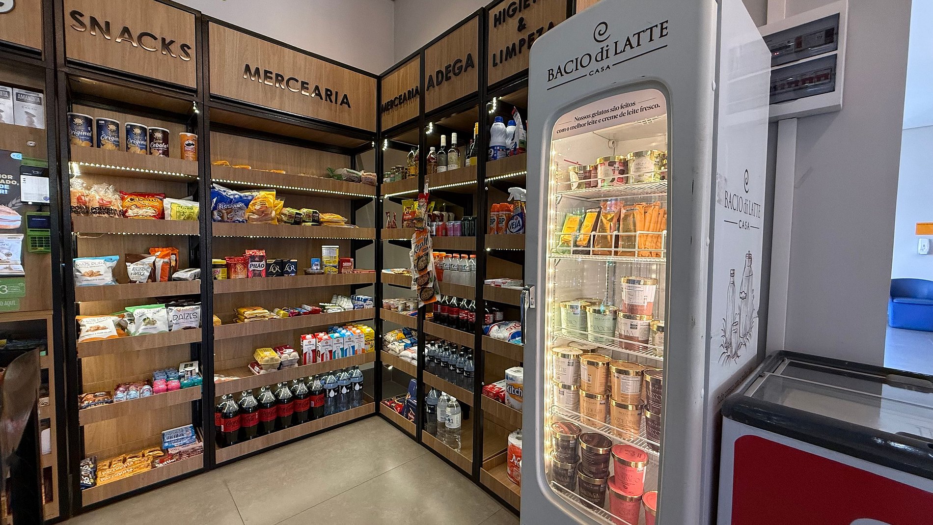 Para necessidades rápidas ou esquecimentos do dia a dia, o condomínio conta com um mercadinho self-service. Itens congelados, snacks, bebidas e produtos essenciais estão disponíveis a qualquer hora. O pagamento é feito na hora, sem necessidade de cadastro, o que torna tudo ainda mais prático.