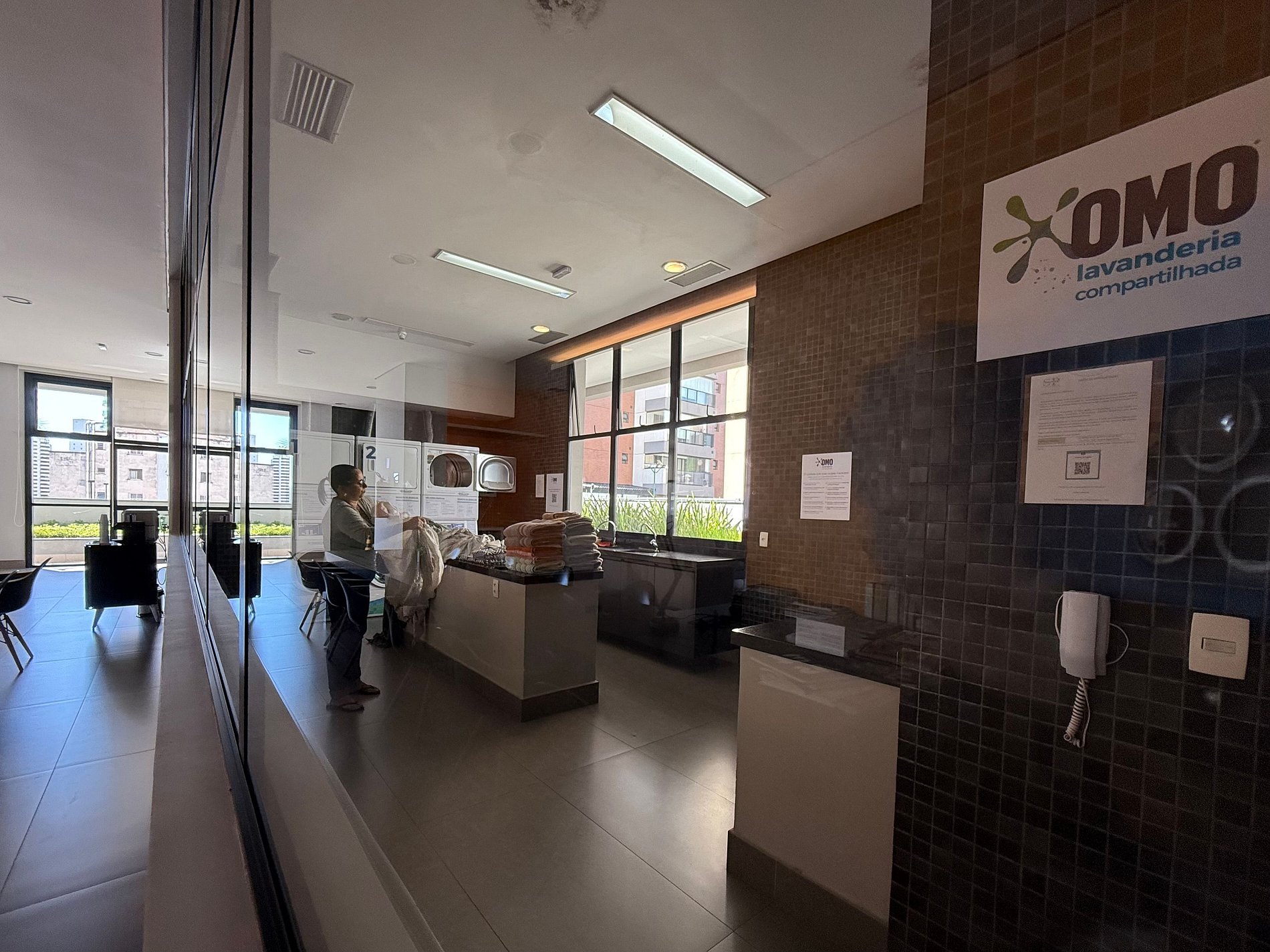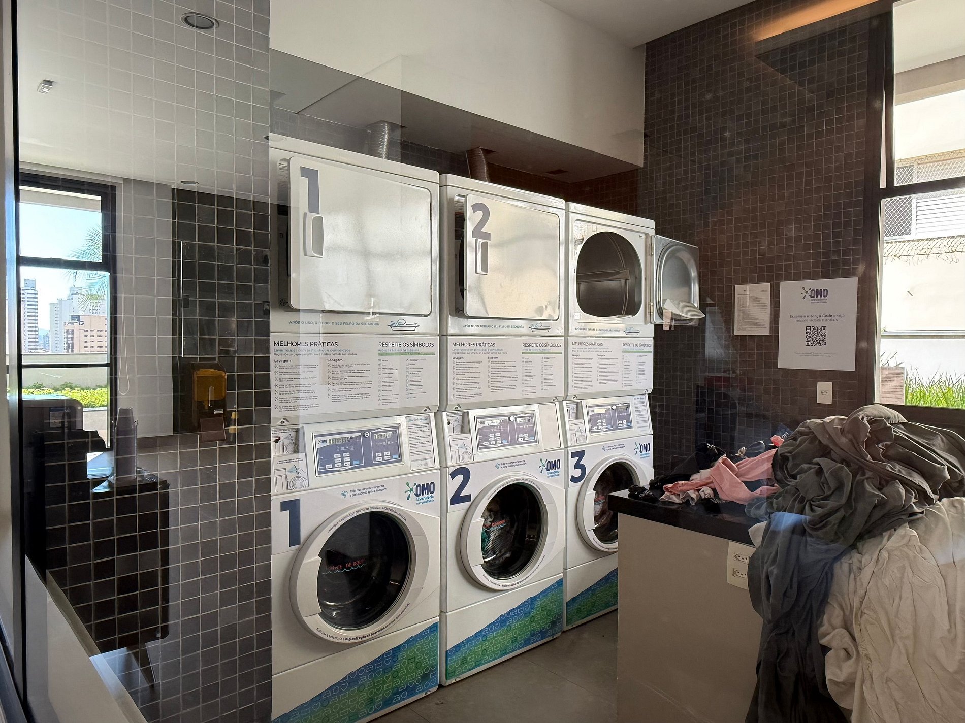 Ao lado, a comodidade da lavanderia OMO, com máquinas de lavar e secar de grande capacidade, oferece mais uma opção para quem prefere lavar roupas em maior volume.